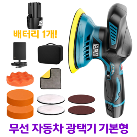 작고 가벼운 무선 미니 광택기로, 전원 연결 없이 어디서든 편리하게 사용할 수 있다는 점이 가장 큰 장점이에요. 주로 좁은 부위나 곡선이 많은 곳, 또는 디테일한 광택 작업에 용이합니다. 강력한 연마보다는 왁싱, 실런트 도포, 그리고 마무리 광택 작업에 더 적합하며, 배터리 잔량 표시 기능으로 사용 중 불편함을 최소화했습니다. 세컨드 광택기나 간편한 관리를 원하는 오너분들께 추천해요. -