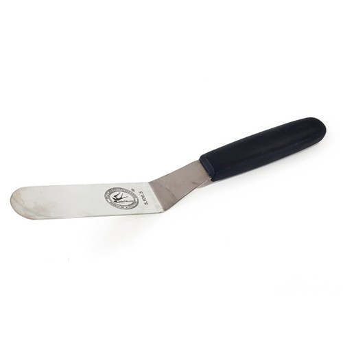 곡선 스패츌라 날이 둥글게 휘어진 형태. 다양한 재질 (스테인리스, 플라스틱 등). 부드러운 아이싱 및 자연스러운 연출에 용이. 좁은 공간이나 굴곡진 부분에도 편리하게 사용 가능. 직각 스패츌라에 비해 매끄러운 표면 연출은 어려울 수 있음. 케이크 윗면 아이싱, 굴곡진 디자인 표현, 크림 블렌딩